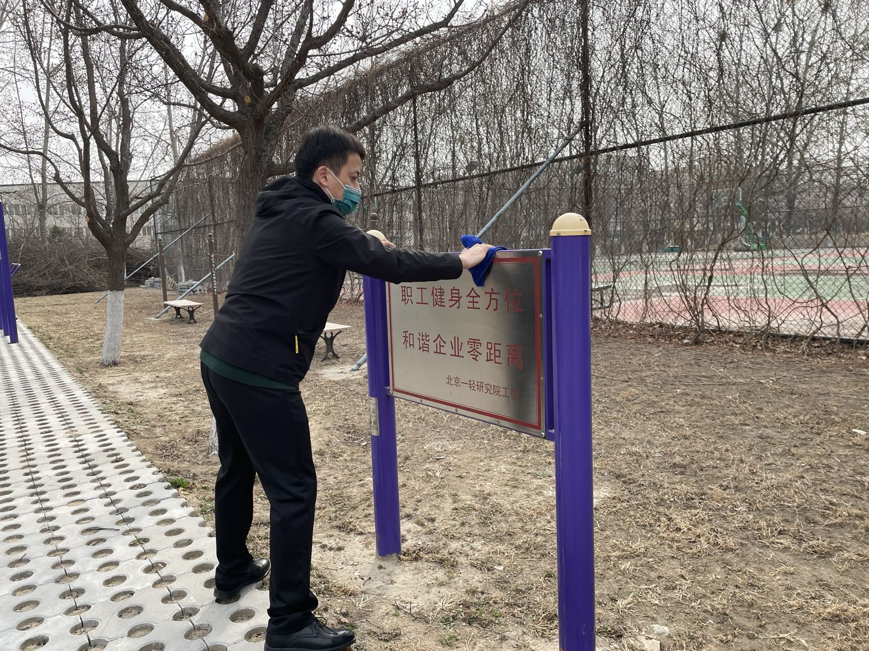 結合常態化疫情防控要求,本次活動主要圍繞園區內展開,對一輕院次渠園區科技展廳部分設施及園區健身器材進行清掃擦拭。活動開始前將人員分為兩組,由園區物業人員分配清理區域后開展。科技展廳內主要為走廊處玻璃的清理,通過干濕兩次進行分別擦拭,將玻璃窗及邊沿污漬擦拭干凈;健身器材為露天設備,受自然天氣影響較大,為保障企業職工正常使用,對健身器材進行多次擦拭,為方便職工使用,創造良好健身環境打下基礎。