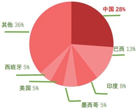 柑桔是世界第一大水果,面積和產(chǎn)量均居世界各類水果之首。目前,中國柑桔產(chǎn)量占比全球約28%左右,持續(xù)保持世界柑桔種植面積、產(chǎn)量雙首位。