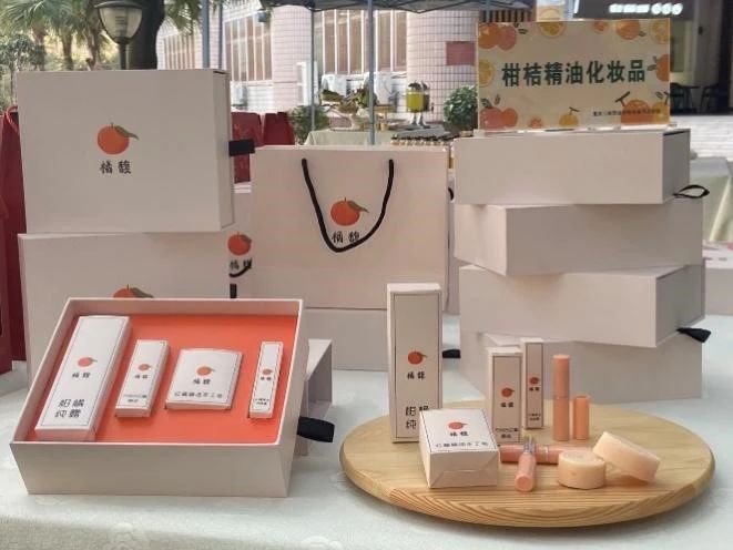 由于紅桔精油的護(hù)膚特性,其常被用于制作化妝品的原料。重慶三峽職業(yè)學(xué)院組建紅桔深加工團(tuán)隊(duì),已成功開發(fā)出精油、潤唇膏、香皂等古紅桔精油化妝品。