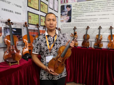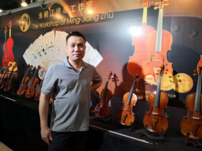 因為疫情原因,今年的廣州樂器展提琴展館幾乎見不到外商。參展商雖然少于往年,但賣提琴配件和提琴木材的也有不少。廣州作為提琴制作重鎮(zhèn),許多提琴廠家或提琴工作室每年都會前來參加開在家門口的樂器展會。記者看到了廣州劍膽琴心樂器有限公司、廣州越秀區(qū)華興樂器行、廣州晏林提琴工作室、廣州華聲樂器廠、廣州一帆樂器等廣州當?shù)氐囊恍菲髡股獭V州劍膽琴心樂器有限公司是國際提琴制作大師朱明江創(chuàng)辦的提琴公司,朱明江大師幾年前英年早逝,這家公司依然運行著。掌門人朱衛(wèi)憲表示:我們公司每年都會參加廣州展和上海展,因為參加樂器展會,為我們提供了學習和宣傳自己品牌的機會。他說在疫情期間,我們的樂器出口沒有受到太大影響。