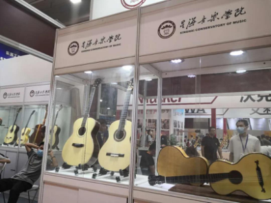 今年的廣州樂器展,西安音樂學院和星海音樂學院都積極參展。西安音樂學院樂器廠展示了他們的"朱雀"牌古箏,星海音樂學院樂器工程系展示著弦樂器制作專業(yè)學生的吉他、提琴等作品。出自高等音樂院校的樂器一定有著不同尋常的意義,他們的文化符號也許更加鮮明。