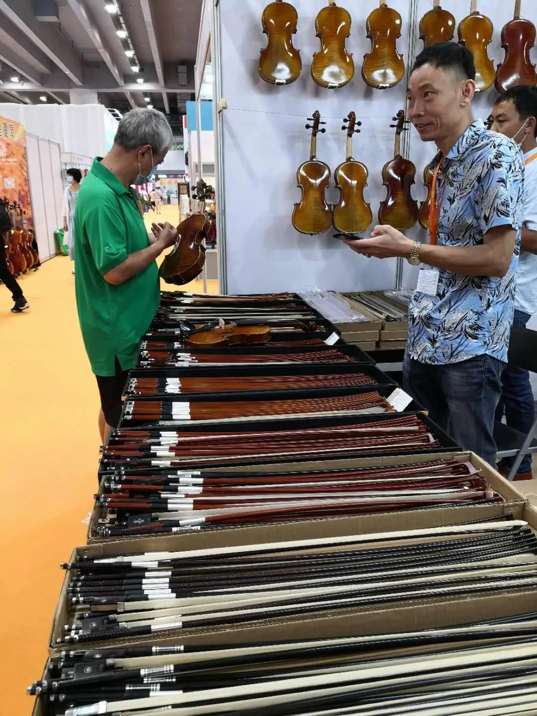 廣州華星樂器行帶來了一些中高端的提琴參展。總經(jīng)理吳祖亮表示:原來我們的提琴多以出口為主,因為疫情的關(guān)系,現(xiàn)在只能走內(nèi)銷這條路。為此,我們今后要多與專家溝通,在提琴的舒適度方面不斷改進,在提琴的音質(zhì)、音色方面不斷提升,以滿足國內(nèi)演奏家的需求。吳祖亮表示,參加廣州樂器展,旨在國外銷售渠道不暢的當下,意欲拓寬國內(nèi)銷售渠道。他笑著說:"原以為疫情期間展會效果不會太好,沒想到展會人氣很旺,比我預想的要好很多。"這兩天一些顧客到他的展位選購了一些小提琴和大提琴,令他很是欣慰。